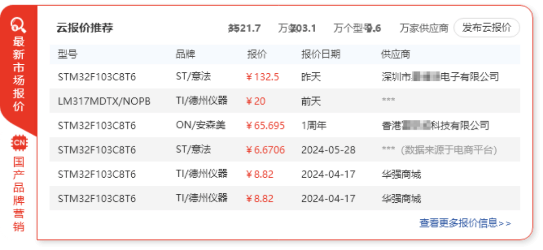 云报价(p.hqew.com)提供海量实时精准报价,帮助供采双方快速了解价格趋势,有效提升询报价效率。供应商分享库存报价,可提高型号曝光,获得更多询盘机会。